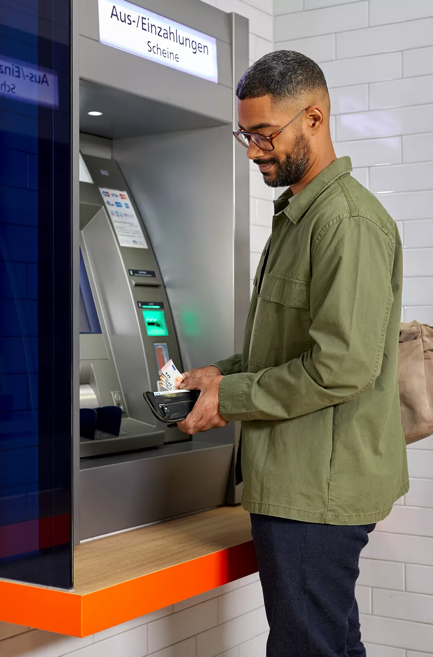 Sie haben ebenso die Möglichkeit, Geldscheine oder Münzen an einem Bankschalter einzuzahlen. Je nach Filiale können Sie das Kleingeld entweder unsortiert oder zuvor sortiert und eingerollt in speziellem Papier abgeben. Das Rollenpapier für Münzen erhalten Sie bei Ihrer Volksbank Raiffeisenbank.